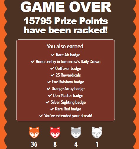 On my first HIDDEN game yesterday I hit new personal best scores in three areas—15795 points, 49 completed words and 7 badges—all in 19 minutes. This came 55 days after the last best points score, and got me my 41st Fox Rainbow badge and 25 Rewardicals.…